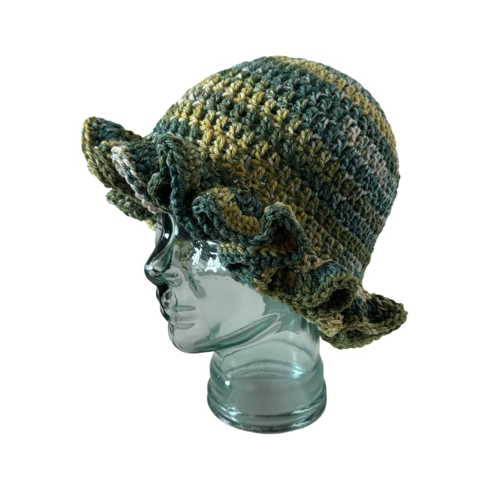 Green Ombré Ruffle Crochet Hat